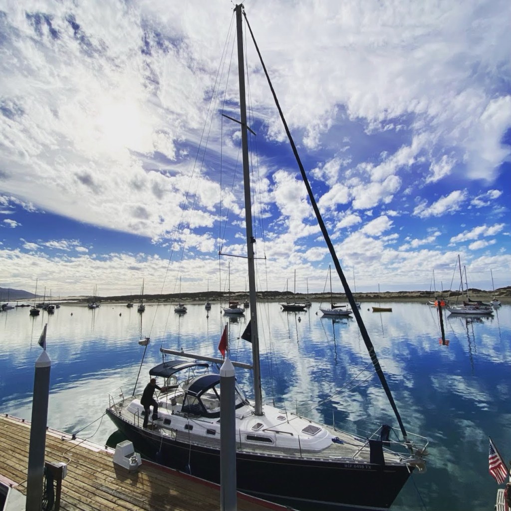 This is SV Cosmo, our pride and joy, and our floating home for the last few years. Here she is docked in Morro Bay in December 2020 halfway through our first passage aboard when we brought her up from Santa Barbara to Monterey. She is a 2000 Dufour 43 foot center cockpit, built in France and delivered to the US where she’s had 2 previous owners before us. Luckily for us, the previous owner was upgrading to a motor yacht and was eager to empty his slip in the Santa Barbara Marina so it was a quick and easy purchase.