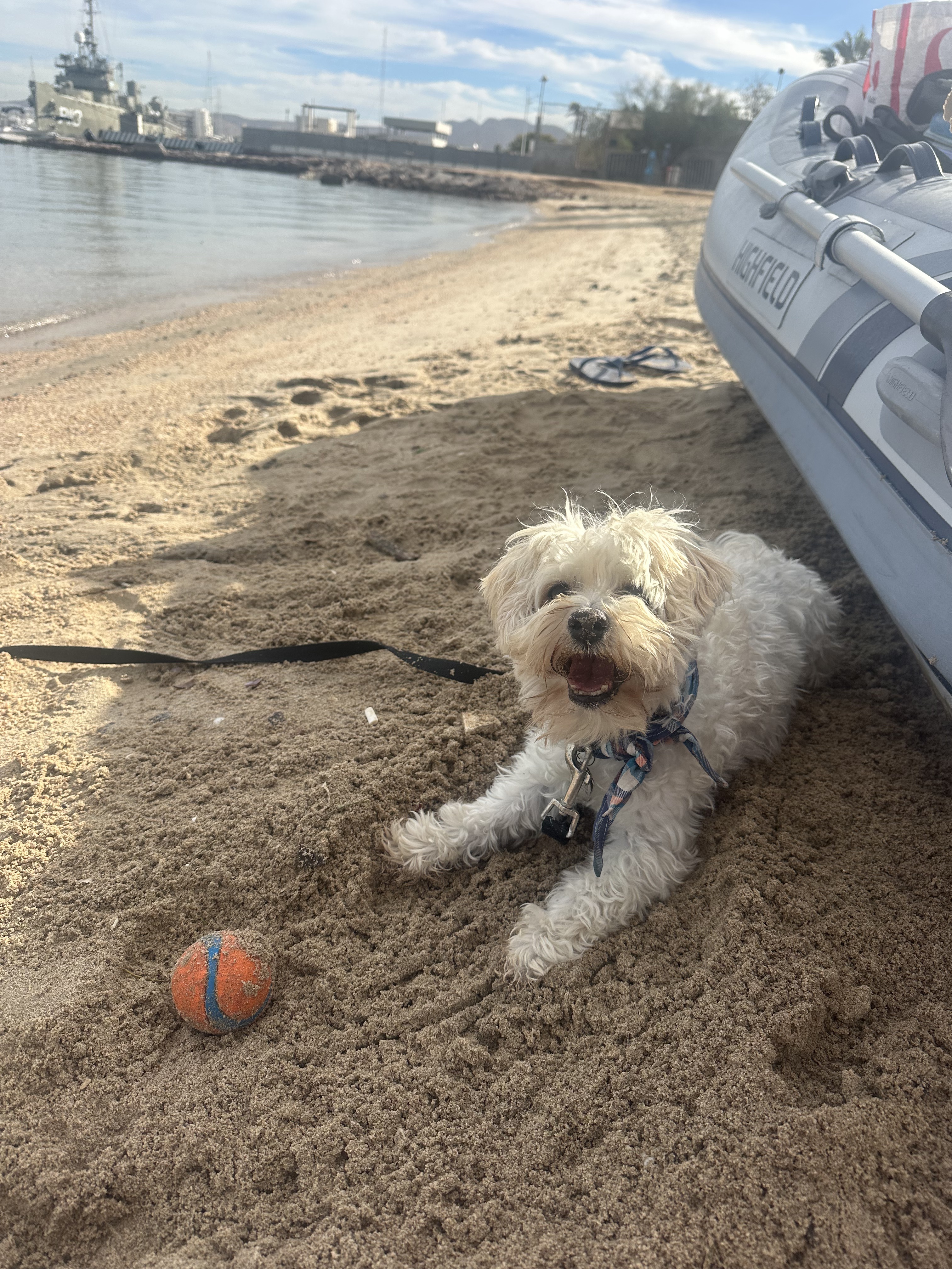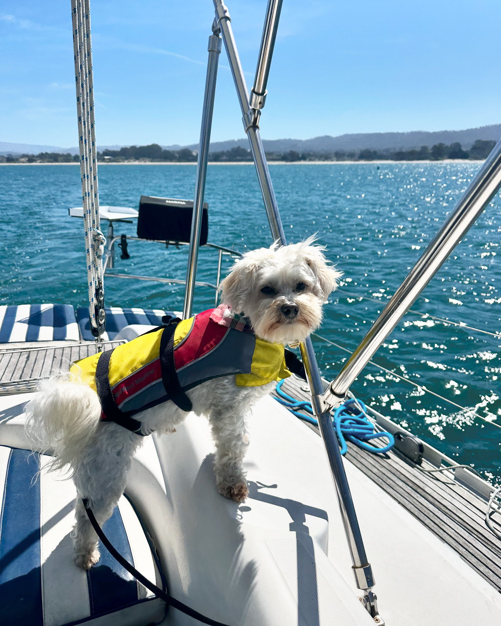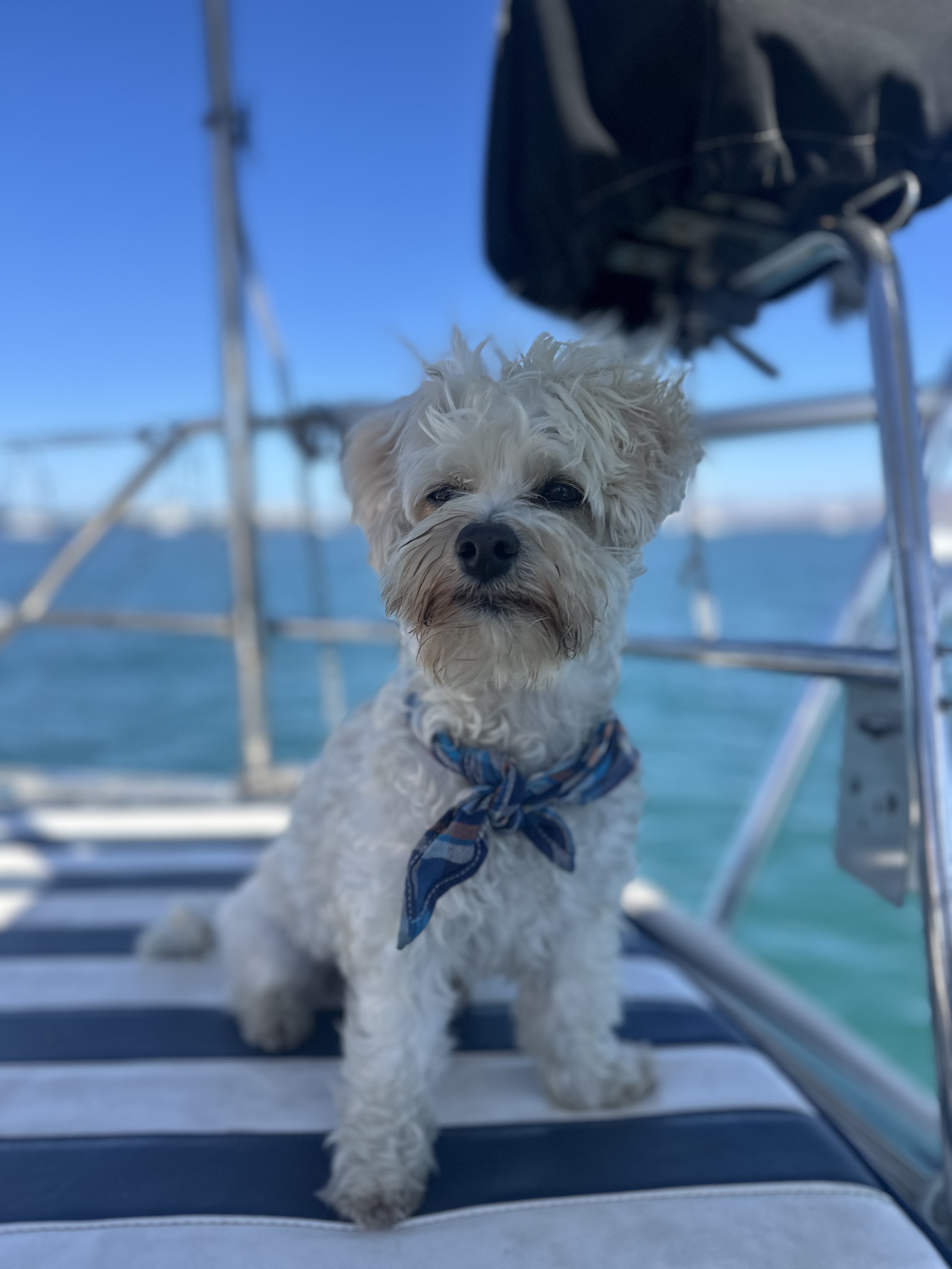 Pinot, the pint-sized maltipoo who crashed the SmoCo family party in 2018, is not just the smallest member of the crew on SV Cosmo—he’s also the loudest! This little furball loves long walks on the beach, chasing flies, barking at dolphins, and soaking up the sun. On our passage down the Baja coast of Mexico, he finally nailed the art of using his fancy on-deck bathroom turf pad—the biggest accomplishment of his life! Does he love sailing and boat life? Oh, you betcha! You’ll often find him snug as a bug in his dog bed, right next to the captain at the helm, dreaming of cheese treats and sunny beaches!